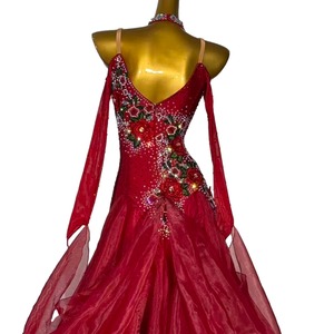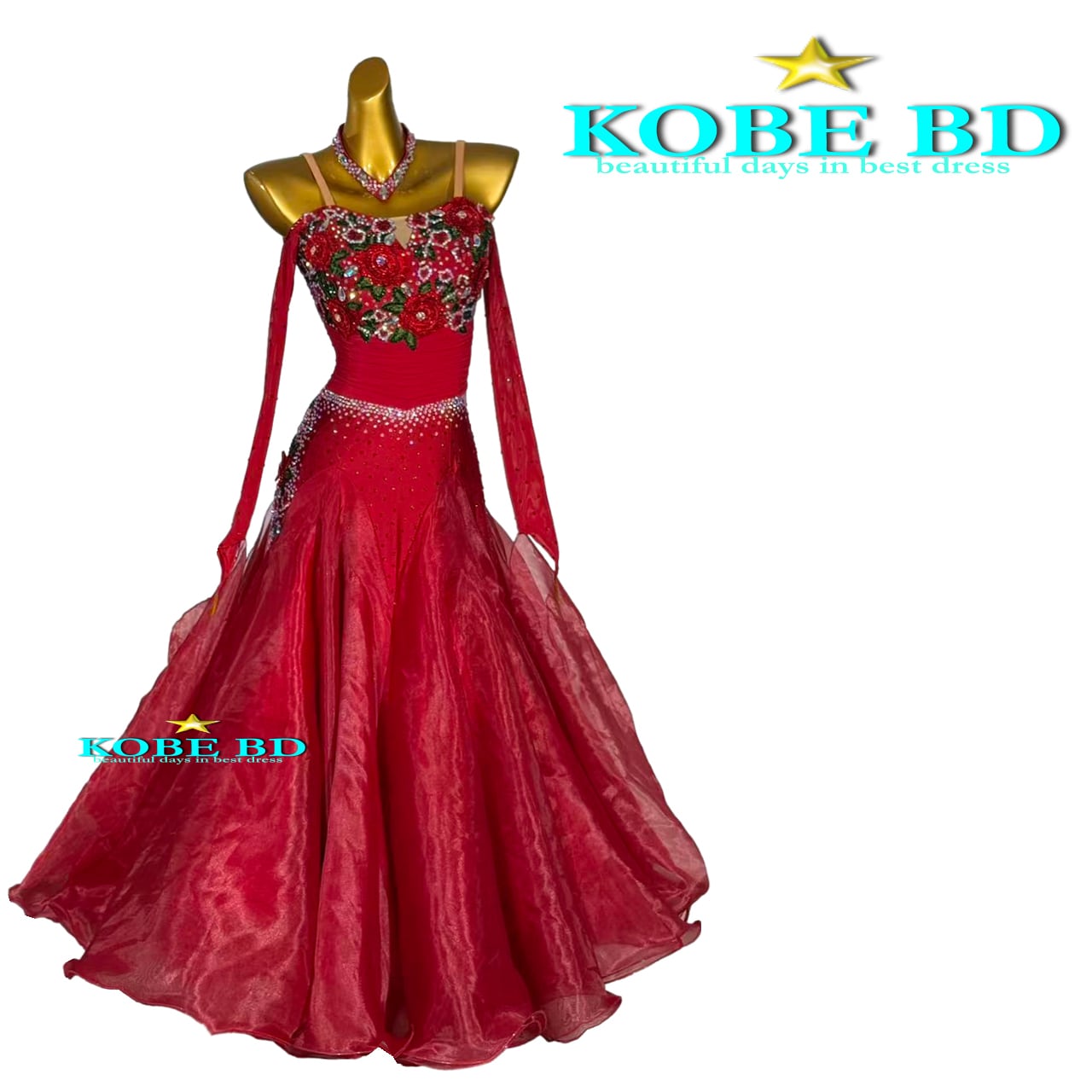 軽やかなスパークルオーガンジースカートは、あなたと共に美しく舞い、まさにフロアに咲く薔薇の花。赤系を生かしてタンゴに。華やかなイメージなので明るい楽曲のワルツにも使えますよね。情熱のお色で競技会にもおすすめ!