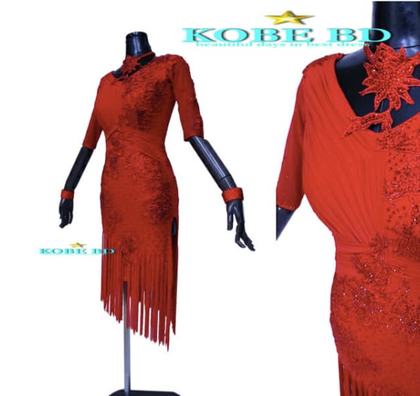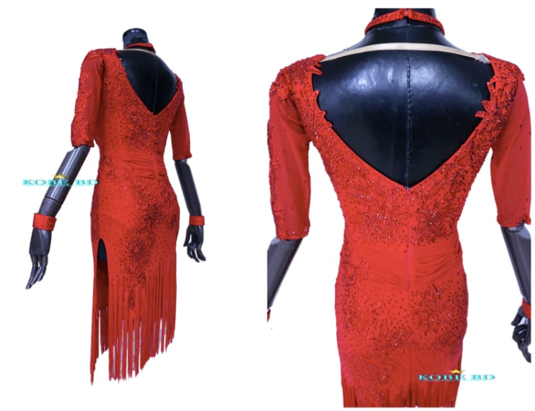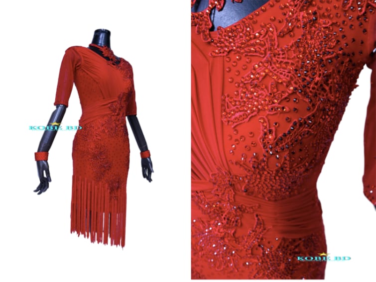 社交ダンスラテンドレス 真紅 レッドカラー イージー オーダードレス【商品番AI- 0207】ルンバ