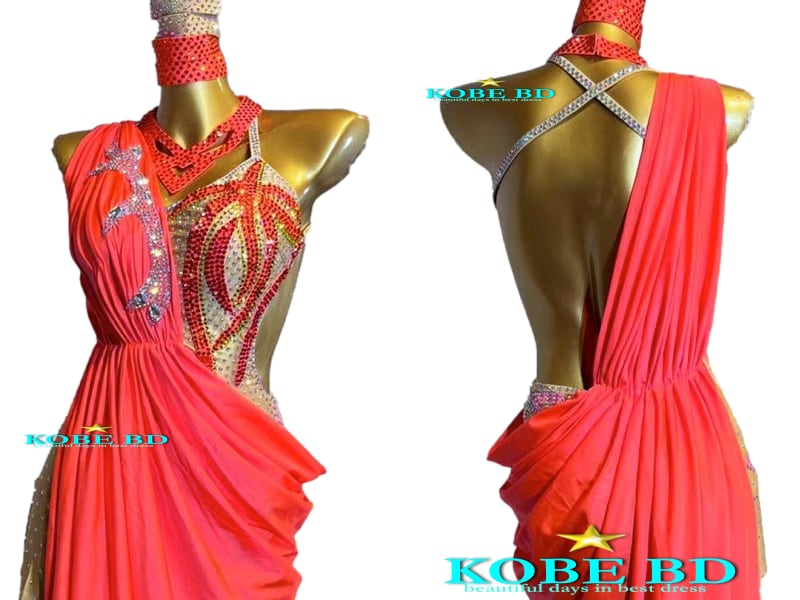 【社交ダンスドレス】セミオーダーラテンドレス【商品番号AI- 91118 】オレンジ/橙色 ルンバ セグエ 競技会