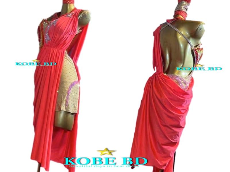 フロントはシャープ流線型デコレーション、それに対して、魅惑的にオープンされたバックラインで貴女のラテンムーブメントをより女性らしく見せてくれます。