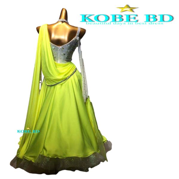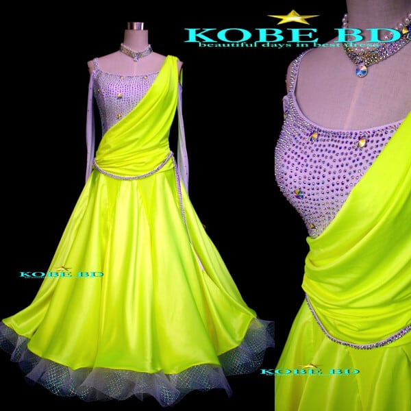 【社交ダンスドレスショップKOBE BDオリジナル】 【商品番号AIJ- 81001 】【スパークルイエローグリーン 蛍光色サテン】