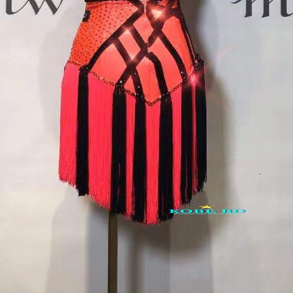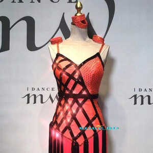 【オーダー 社交ダンスドレス】I DANCE MW 商品番号 2337 Aコーラル(珊瑚/赤/オレンジ/黒系統) /ラテンドレス 競技会 ソロデモ パーティー /ルンバ チャチャ サンバ ジャイブ