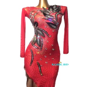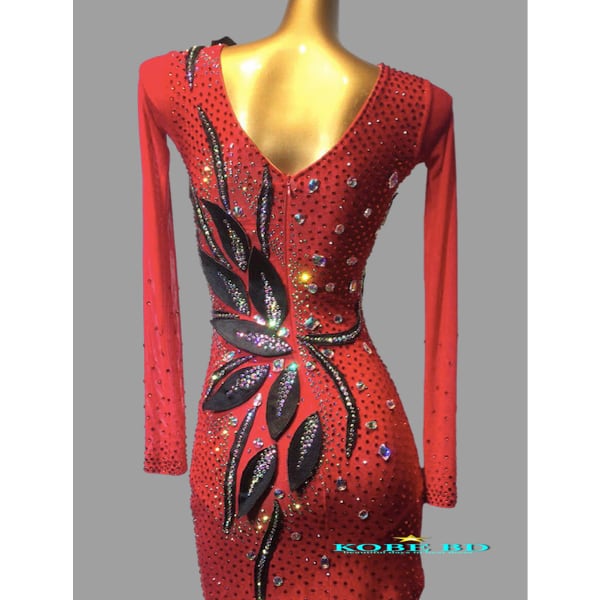 【オーダー 社交ダンスドレス】I DANCE MW 商品番号2338Aレッド(赤/黒系統) /ラテンドレス 競技会 ソロデモ パーティー /ルンバ チャチャ サンバ ジャイブ
