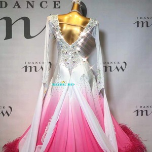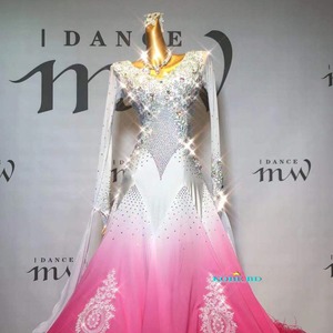【オーダー 社交ダンスドレス】I DANCE MW 商品番号 2347 A(グラデーションローズピンク 白 ピンク系統) /スタンダードドレス 競技会 ソロデモ パーティー /ワルツ クイックステップ スロー