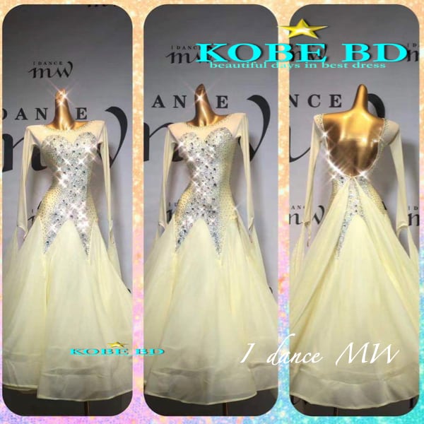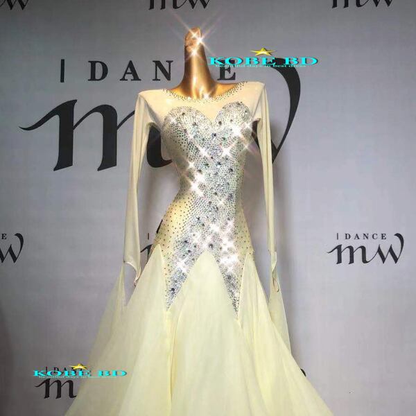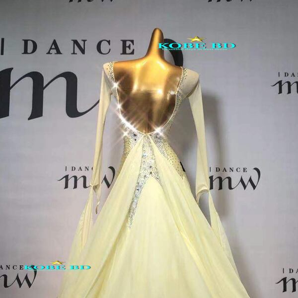 【オーダー 社交ダンスドレス】I DANCE MW 商品番号 2349 A(パステルイエロー 薄い黄色) /スタンダードドレス 競技会 ソロデモ パーティー /ワルツ クイックステップ スロー
