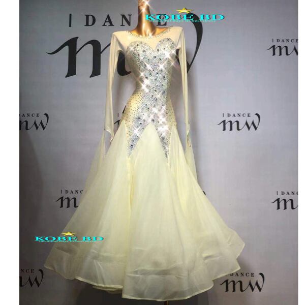 春の中に咲く一輪の花のようなパステルイエロー。薄いお色はフロアでまるで浮かぶようにみえ、埋もれにくくパーティーはもちろん、競技会にもおすすめです。