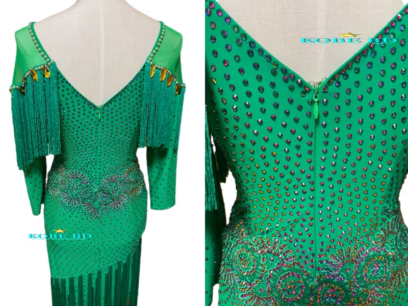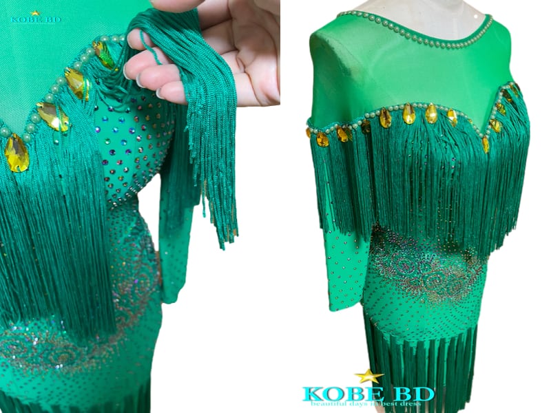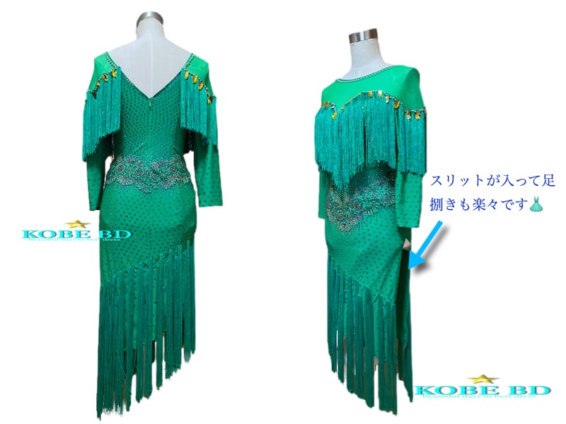 【社交ダンスドレスショップKOBE BDオリジナル】ラテンドレス エメラルドフリンジ[商品番号 AI- 2129]