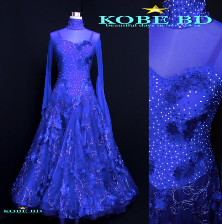 社交ダンスドレス【当店オリジナルデザインドレス】イージーオーダー ロイヤル(青) スタンダードドレス【商品番号AI- 2617 】 ワルツ スロー クイックステップ ウィンナーワルツ セグエ 競技会