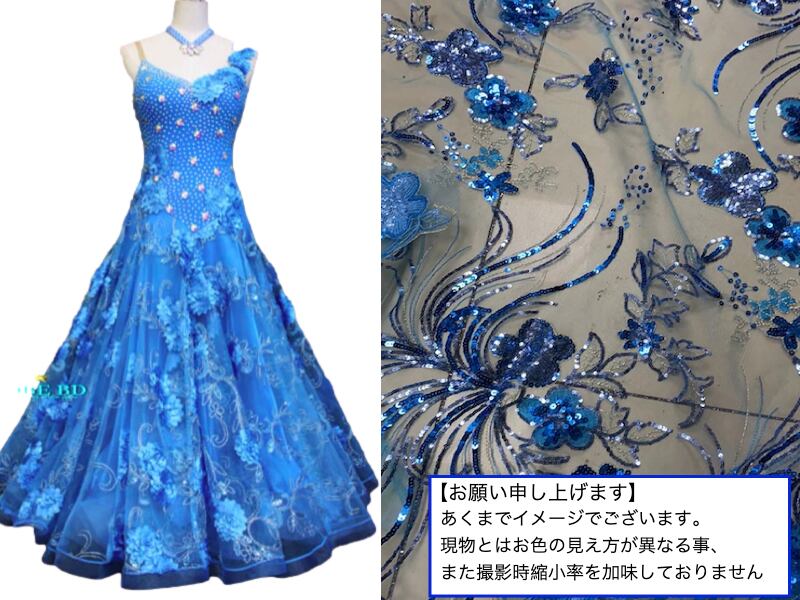 社交ダンスイージーオーダードレス⭐︎(コバルト/ブルー/青系)【商品番号AI- 80628青 】ワルツ スロー ウインナーワルツ