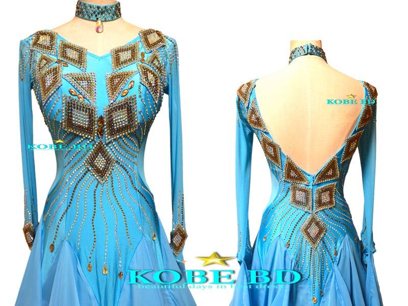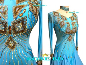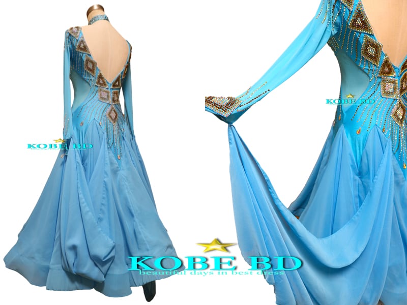 社交ダンスイージーオーダードレス⭐︎(青系/水色)【商品番号A- 2357 ターコイズ 】スタンダードドレス ワルツ スロー