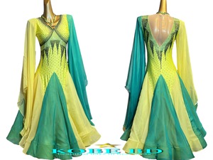 【社交ダンスドレス】【セミオーダースタンダードドレス】⭐️【商品番号 24502 - A 】イエローアンドグリーン