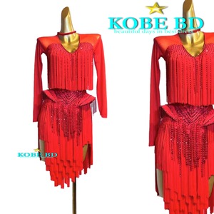 憧れの真紅。ボディ、スカートにタッセルリリアンを施したラテンテイストたっぷりの一枚。