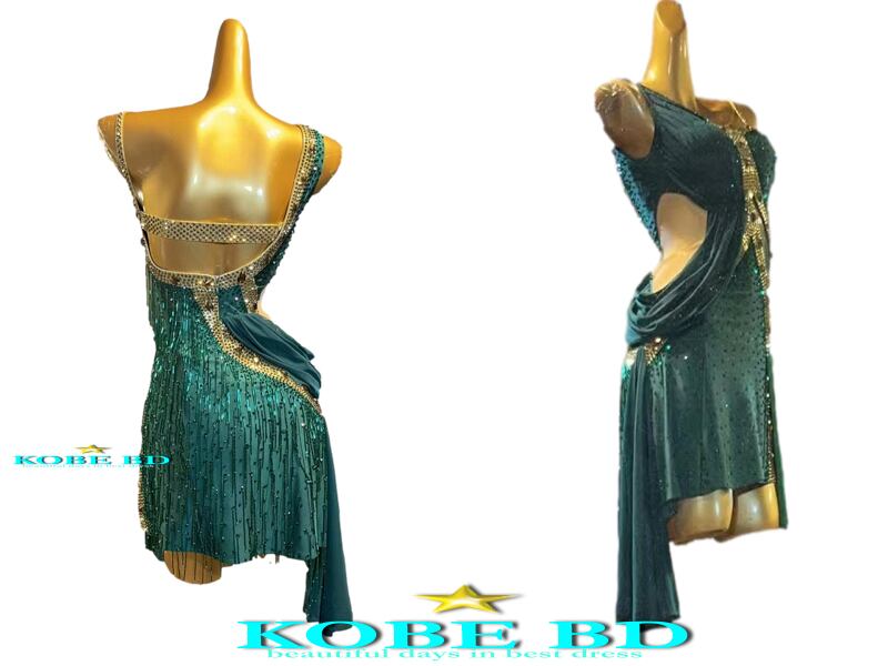 社交ダンスラテンドレス(グリーン&ゴールド/緑)【商品番号AIー 23120 】AI 2334 の変形バージョンです