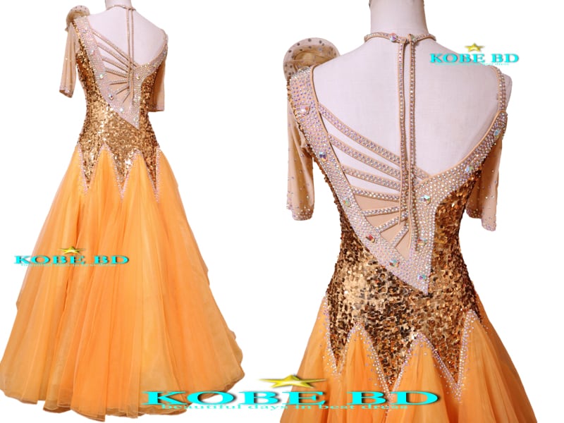 【社交ダンスドレスショップKOBE BDオリジナル】スタンダードドレス(ゴールド)【商品番号AIー 23833 】ワルツ スロー クイックステップ ウィンナーワルツ セグエ 競技会